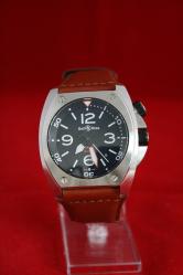 Bell & Ross Classic Pilot Watch. 41mm case. Silver-White dial with Black Arabic index. Day Date window at the 4.30 position. Acrylic crystal glass. Automatic chronograph movement. 28800 vpm. 42 Hours Power reserve. Luminescent Battons, Luminescent Hands, Screw-Down Crown. Black leather strap with original B&R Pin Buckle. Water resistant to 50 meters. Watch only with service box.
