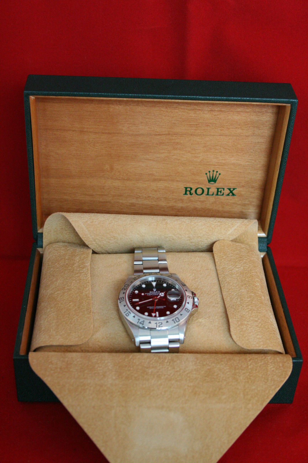 Rolex Oyster Perpetual Date Explorer 2 16570. Steel 40mm case diameter water resistant to 100 meters. Black dial with applied luminous hour markers, third red hand for second time zone. Steel Oyster lock bracelet. Box and K serial dated 2002 and comes with original booklet.